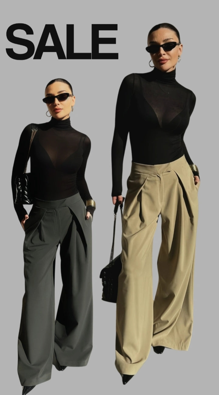 Grey-High Waisted Wide Leg Pants