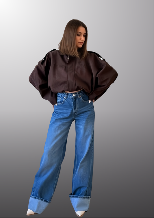 SUEDE ZIPPERED DROP SHOULDER BOMBER JACKET