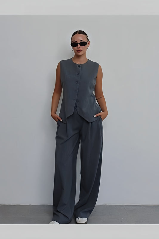 Long-sleeved Pleated Top and Two-piece Pants Suit