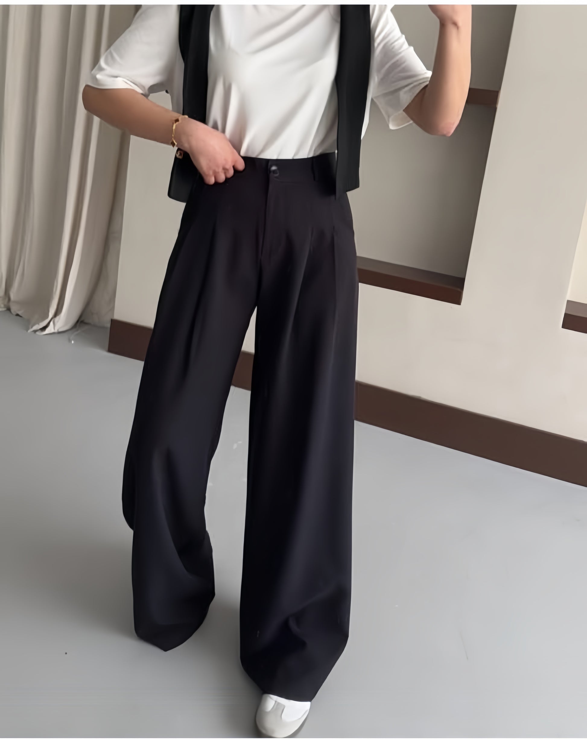 Black-High Waisted Wide Leg Pants